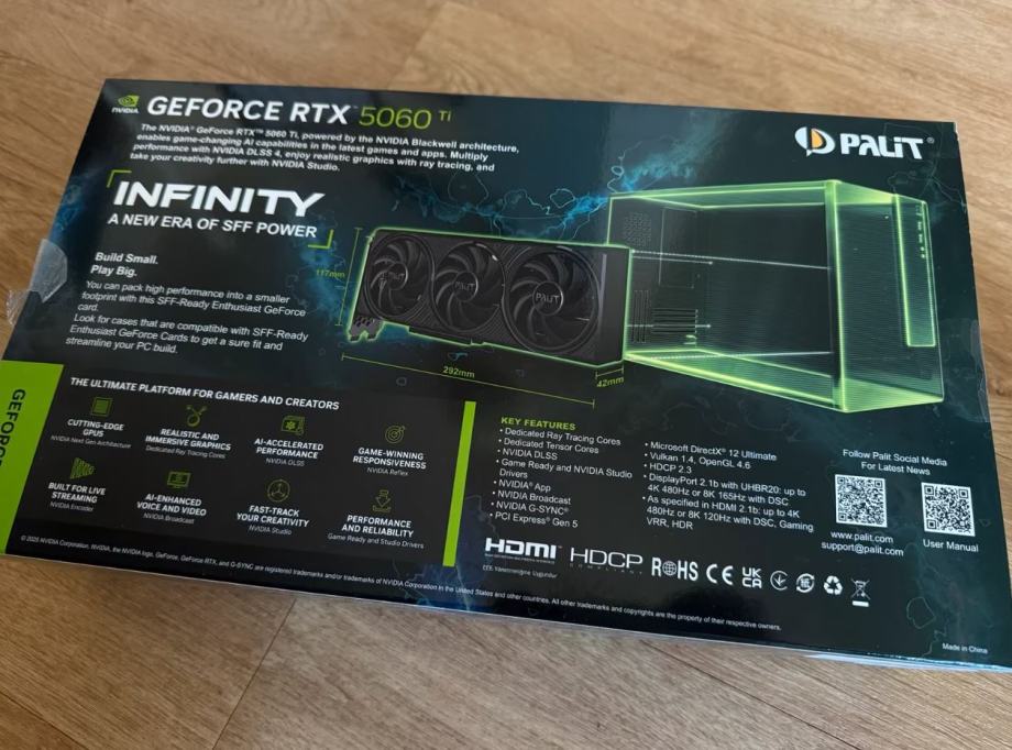 Prodajam skoraj novo grafično kartico NVIDIA GeForce RTX 5060 Ti 16GB Palit Infinity 3 OC. Uporabljena le kratek čas za začasni projekt, deluje brezhibno. Je hladna, tiha in stabilna tudi pri večjem obremenjenju.