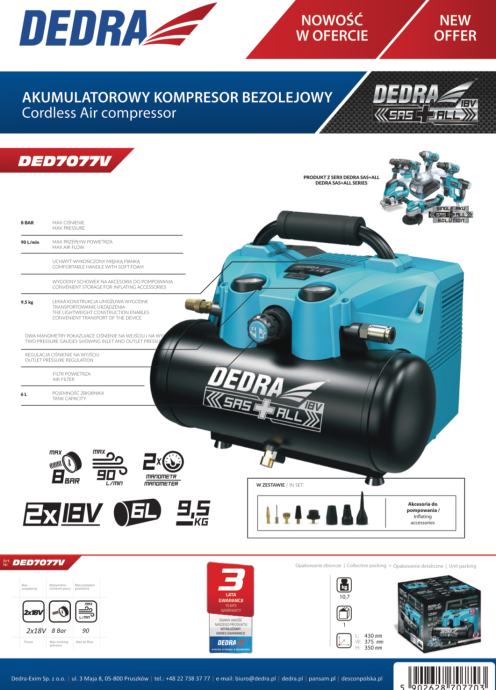 Akumulatorski zračni kompresor 2x18 V DEDRA SAS+ALL DED7077V 6 L