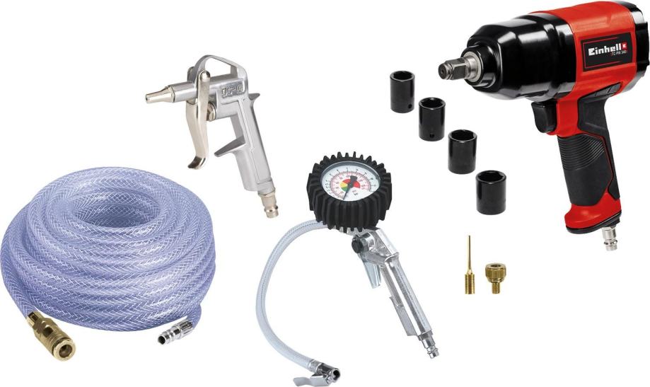 10-delni komplet pribora za stisnjen zrak Einhell je uporaben pri številnih opravilih v domu, delavnici, garaži in v prostem času.