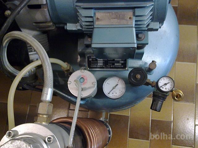 Odlično ohranjen kompresor brezoljni tribatni velike kapacitete z sušilnikom zraka znamke DURR primeren za dentalne ordinacije: pokončni za napetost 380V.