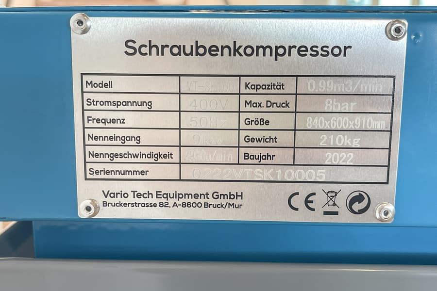 Prodam vijačni kompresor7,5 kW, 400 V, maks. tlak: 8 barov, pretok: 990 l/min, zračno hlajeno, zaščitni razred: IP55, raven hrupa: približno 67 dB, neto teža: približno 210 kg.