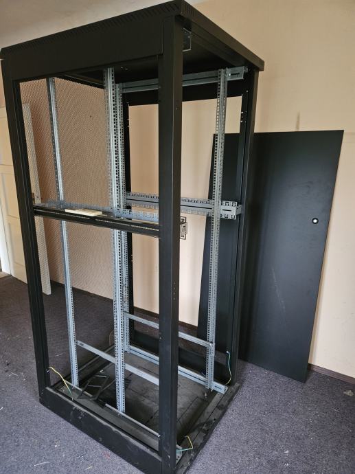 Server komunikacijska omrežna omara 42U 800x1000mm, lep moderen črn dizajn, režasta propustna vrata, montažne stranice, ključavnica, hladilni in kabelski utori zgoraj in spodaj. Rabljena in v odličnem stanju!