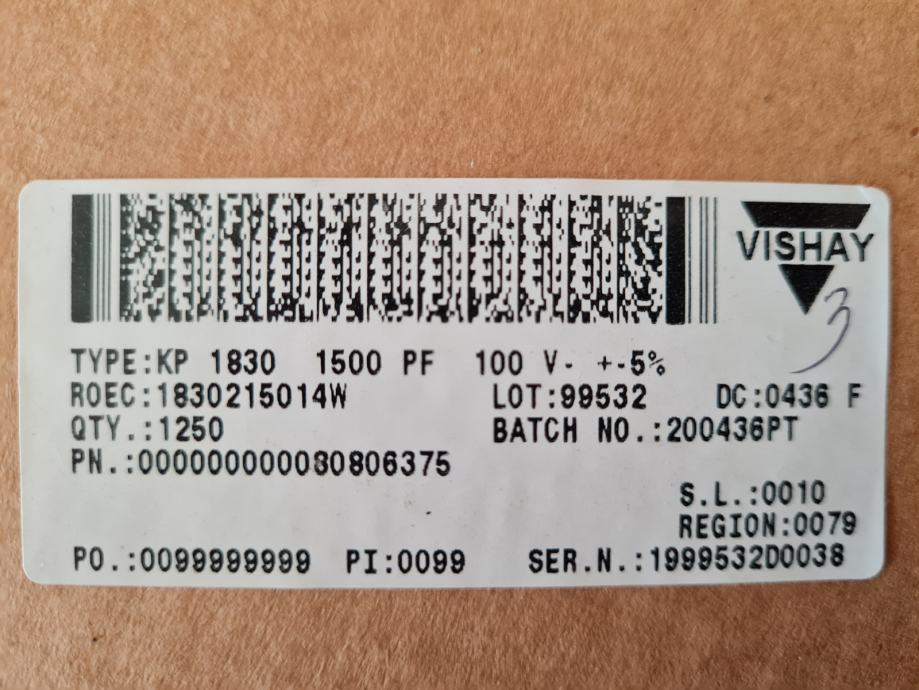 Prodam približno 1/3 role kondenzatorjev Vishay KP 1820 1500PF 100V +-5%