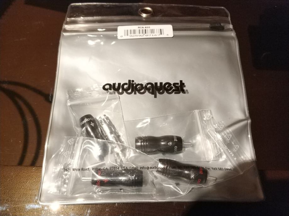 Prodam 4 nove RCA priključke Audioquest RCA 800. Priključki so novi in originalno zapakirani.