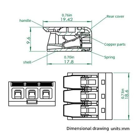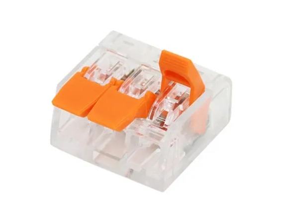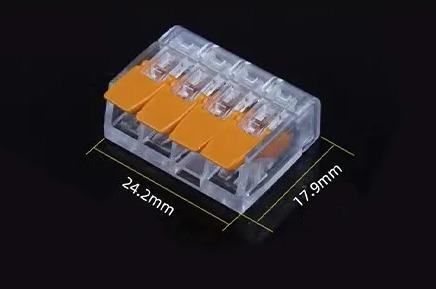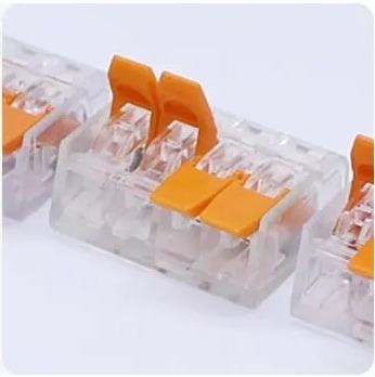 Prodam hitri konektor / sponko za žico oz. kabel, s tremi ali štirimi kontakti / terminali. S takim konektorjem lahko en žico razcepimo na dve ali tri, oziroma staknemo skupaj 3 ali 4 žice.