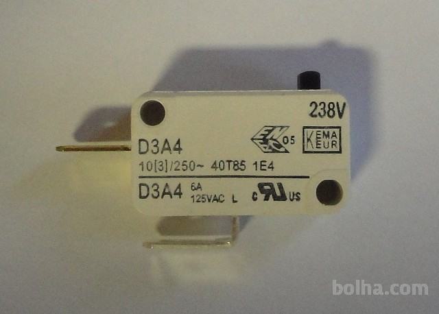 Mikrostikalo 10A 250V z ročico ali brez, 1xdelovni kontakt, priključek 6,3x0,8mm