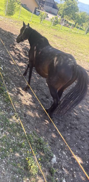 Naprodaj breja kobila s pikastim žrebcem in je stara 6 let je mirna in vajena drugih živali in je krotka takoj pride k človeku in vajena paše ima urejen ID.za vec info pokličite 041715788