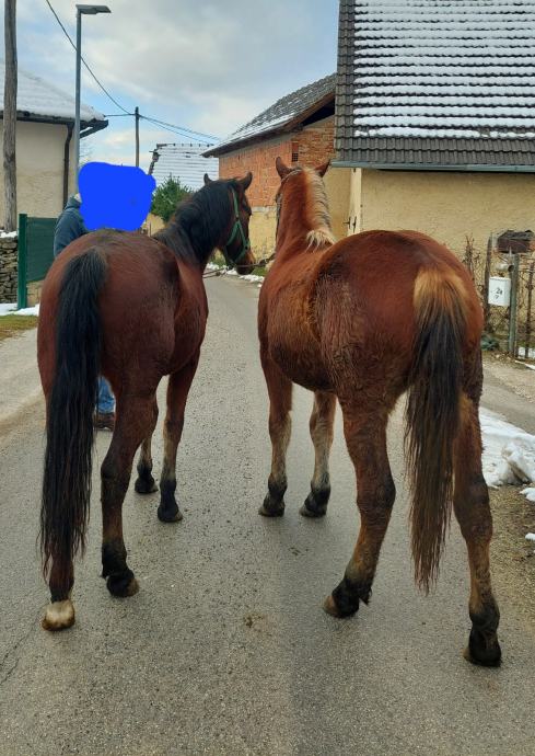 Prodam kastrata in kobilo krizanca. V aprilu bosta stara 2leti. Imata urejen Id. Sta zdrava,mirna, vajena priveza, dvigovanja nog in kovaca. Trenutna visina cca 150cm. Sem iz okolice šentjerneja. Vse inf. na 070 726 685