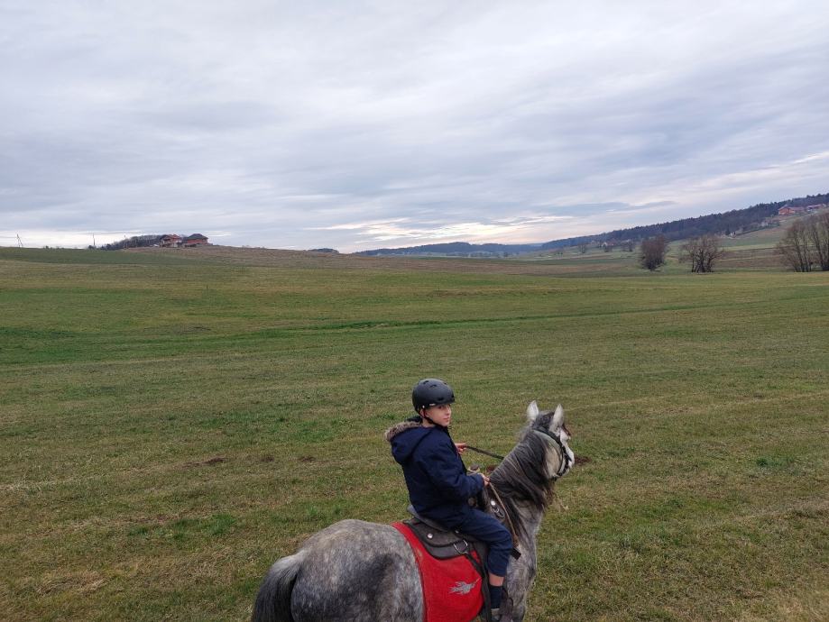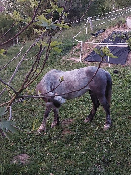 Prodam kobilo, ki je visoka 130 cm. Kobila je začetno ujahana pri prejšnjem lastniku pa je tudi vozla. Prodajam zaradi nakupa večjega konja, saj je meni premala, otroci so pa izgubili interes. Lani, ko sem jo redno ojahoval in smo jo bolj pogosto jahali je postala zelo dobri terenski konjiček. Ker ni bila jahana eno leto je postala spet malo "začetniška", zato je primerna za nekoliko bolj izkišenega jahača če greš na teren z njo sam. Če je v družbi drugih konj, pa je na terenu popolnoma vodljiva. Stara je 7 let in je do sedaj imela enega žrebeta. Pri nas je vedno veni na pašniku v odprti štali. Kobila je popolnoma zdrava brez slabih navad.