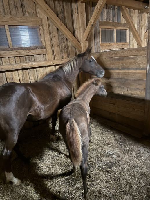 Prodam kobilo polnokrvni arabec, stara 9 let, odlicno vjahana, primerna za začetnike, visoka cca 148cm, podkovana, zraven ima žrebičko staro 3 mesce.