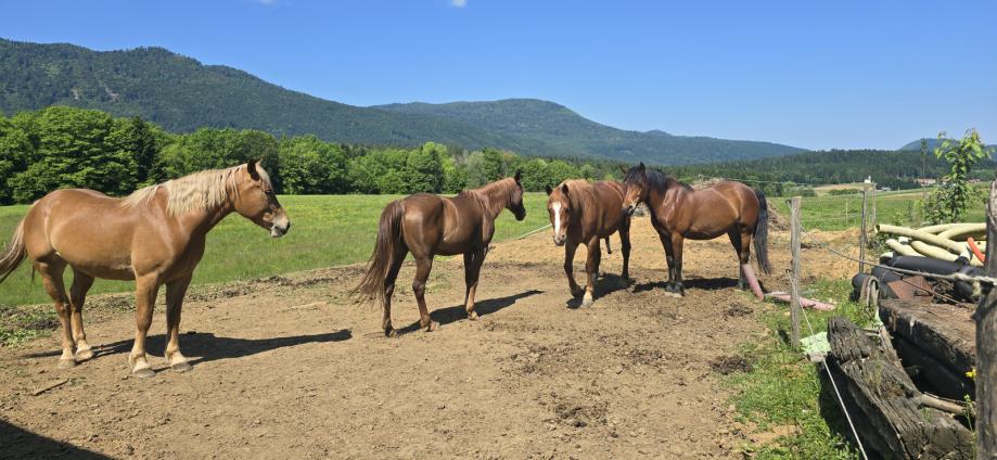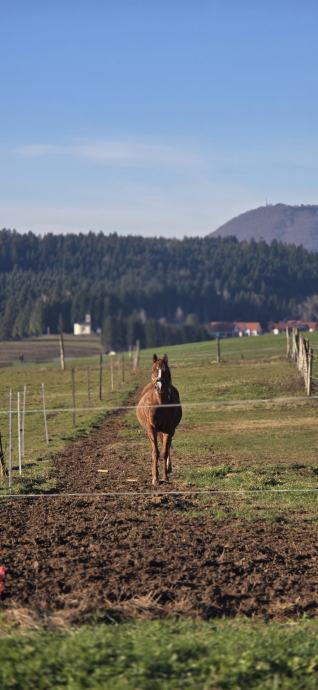 Ker nam je za počutje konj maksimalno pomebno se trudimo ,da so konji čim več uzunaj v ločenih izpustih, zares kvalitetno seno in slama...