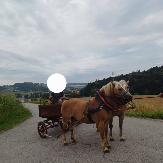 Prodam 2 vozne kobile pasme haflinger. Letnice kotitve sta 2011. Ena je čistokrvna z rodovnikom in klavnimi papirji druga je brez rodovnika in nima klavnih papirjev. Kobile sta vozile, vendar zaradi pomankanja časa nista bile dlje časa vpreženi. Možnost nakupa v kompletu ali posamezno.