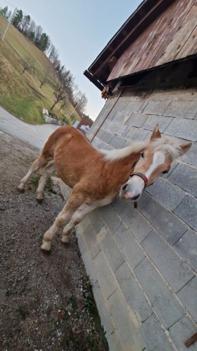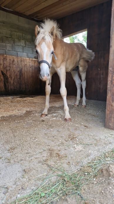 Star je 7 mesecev je čistokrvni haflinger oče je plemenski žrebec zelo priden naučen je vseh osnov dvigne vse štiri noge brez problema na povodcu se ne vleče ko mu das uzdo gor se ne umika bil je že na prikolici zelo rad se druži z otroci, pusti se jim krtačiti hraniti ne grize in ne brca je pa za njegovo starost zelo velik zelo hitro se uči in navaja na okolje in na zvoke ima ogromen potencjal v preteklosti kot žrebec za pripust ali pa kot jahalni koniček
