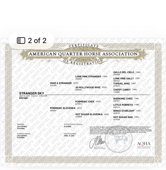 Prodam žrebčka starega 10 mesecev, pasme Americann Quarter Horse. Sky je lepo vzgojen, dviguje vse 4 noge, lepo vodljiv. Vsi papirji so urejeni (tako ID kot tudi rodovnik) Za več informacij sem na voljo na 031461981.