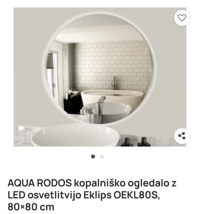 Prodam novo, nerabljeno ogledalo z LED osvetlitvijo za ogledalom. Premer ogledala je 80cm. Originalna cena ogledala je 187,90€.
