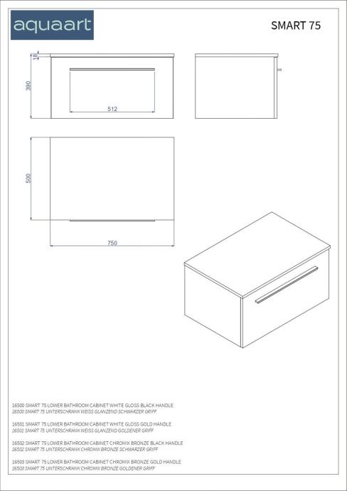 Spodnja kopalniška omarica iz kompleta Smart bo pametna izbira za vašo kopalnico. Ta elegantna omarica je oblikovana s poudarkom na funkcionalnosti in estetiki. Črna ročka doda pridih kontrasta in sodobnosti celotnemu videzu. Ohišje in fronte so izdelani iz kakovostnega MDF materiala, kar zagotavlja vzdržljivost in trajnost. Ta omarica je idealna rešitev za shranjevanje vaših kopalniških potrebščin. S prostornim notranjim prostorom omogoča enostavno organizacijo in hranjenje vseh pomembnih predmetov na dosegu roke. Ne glede na to, ali gre za brisače, kozmetiko ali druge toaletne izdelke, Smart omarica vam olajša ohranjanje urejenosti in organiziranosti vaše kopalnice.Dimenzije (Š x V x G): 75 cm x 39 cm x 51,8 cm.