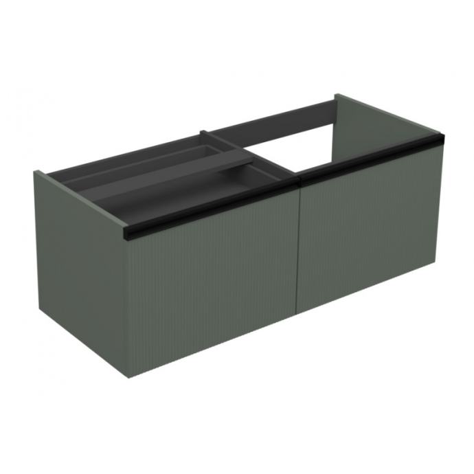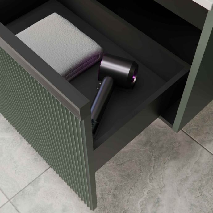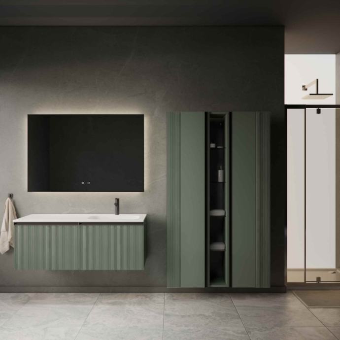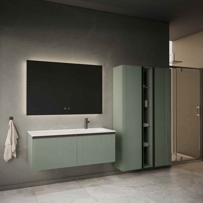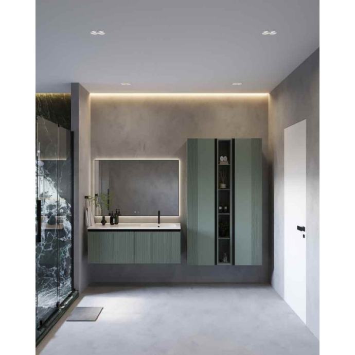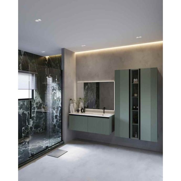Kopalniška omarica MIRAGE 120 z desnim umivalnikom v mat zeleni barvi s črnimi ročaji