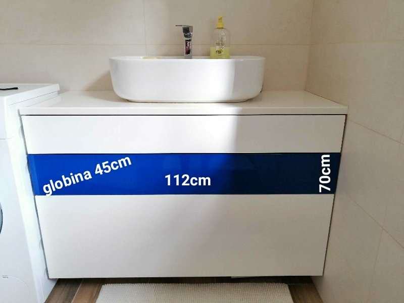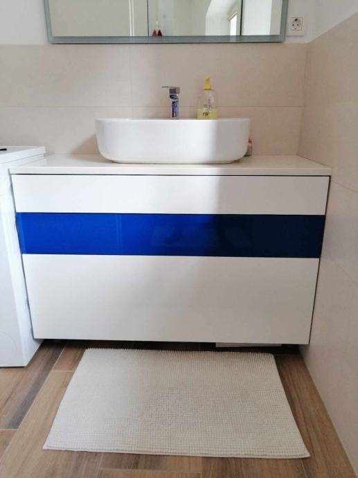 Prodam zelo lepo ohranjen kopalniški predalnik z umivalnikom in pipo. V kompletu je še ogledalo in kotna vitrina/omarica. Vse je izdelano po meri in je praktično neuporabljeno.