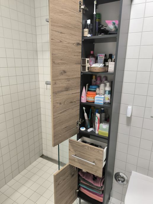 Zaradi selitve prodam omarico pod umivalnikom in visoko omaro (nastavljive notranje police).