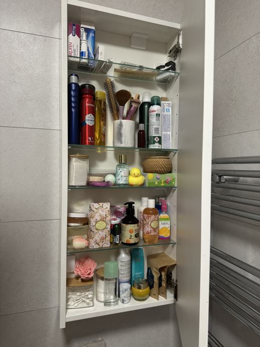 Prodam kopalniško belo omarico, širine 40cm, globine: 15cm in visine: 96cm. Vratca: sjaj bela