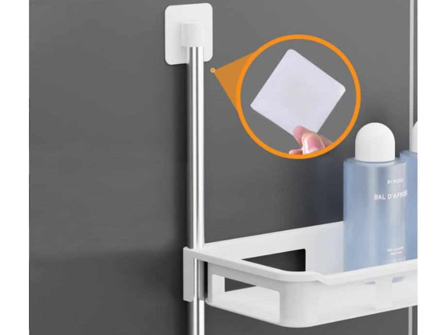 Opremljen je s štirimi kavlji, na katere lahko obesite kopalniške dodatke.
