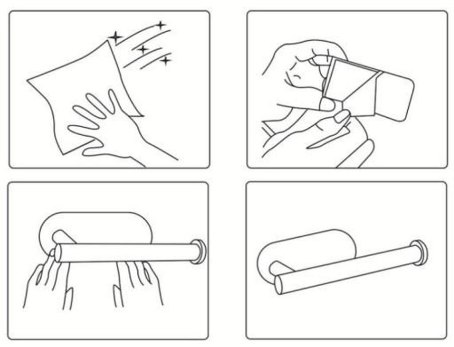 Izdelano iz visokokakovostnega nerjavečega jekla, to držalo zagotavlja trpežnost in dolgo življenjsko dobo. Z dodatkom samolepilnega traku na hrbtni strani je namestitev preprosta in brez težav – brez vrtanja ali poškodb sten. Samolepilni trak zagotavlja močno oprijemljivost na gladkih površinah, kar omogoča stabilno in varno namestitev.