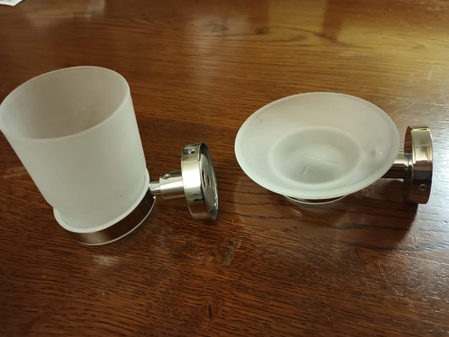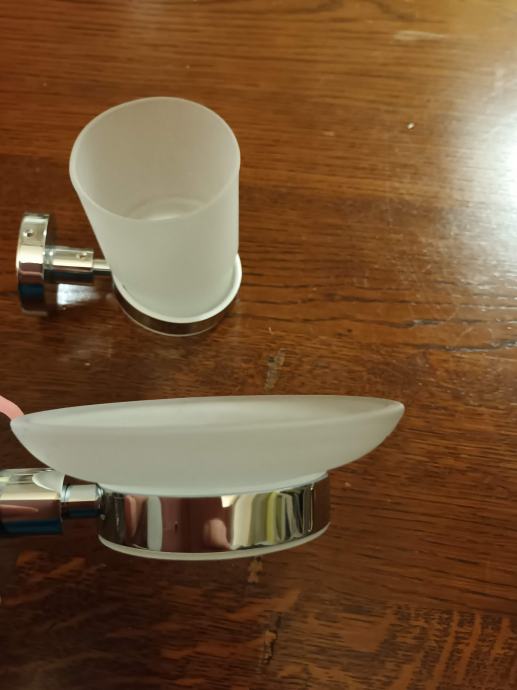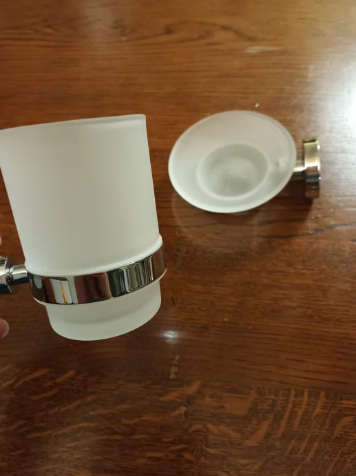krom nosilec z držalo za milo iz mlečnega stekla