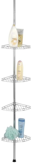 Kakovosten izvlekljiv kotni regal za tuš kabino Prea iz nerjavnega jekla je univerzalno uporaben v tuš kabinah, v kotu kopalne kadi ali kopalnice. Praktičen kotni regal s 4 žičnatimi policami nudi številne možnosti za odlaganje šampona, gela za prhanje, mila, gobe in drugih kopalniških pripomočkov. Namestitev je hitra in lahka - brez vrtanja, saj je treba regal samo preprosto vpeti med tla in strop. Višina je poljubna, saj je drog mogoče izvleči na dolžino od 56 cm do 275 cm.