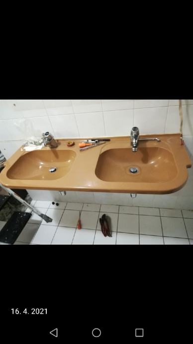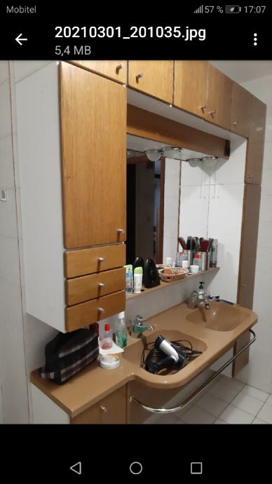 Kopalnica rabljena z ogledalom in osvetlitvijo. Dimenzije sestava 180x210x30 cm. Posamezne omarice: 30x30, 60x30, 30x150, 30x90, 30x60. Umivalnik dvojni 120x50 in bide enak model in barva. Info izključno tule: Janko 068 198471.