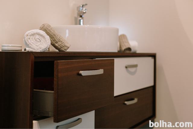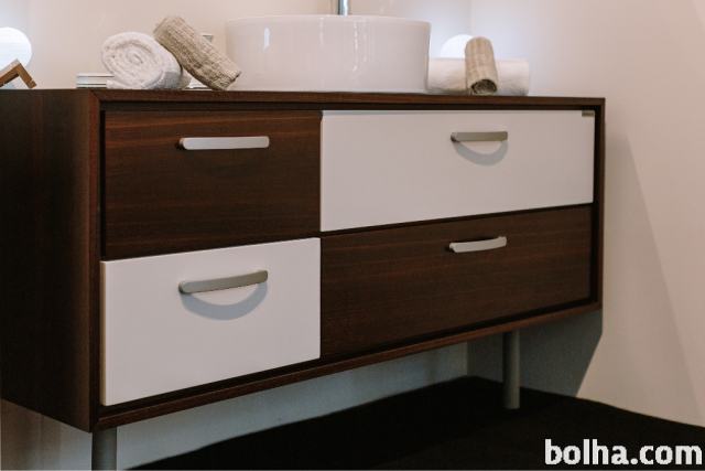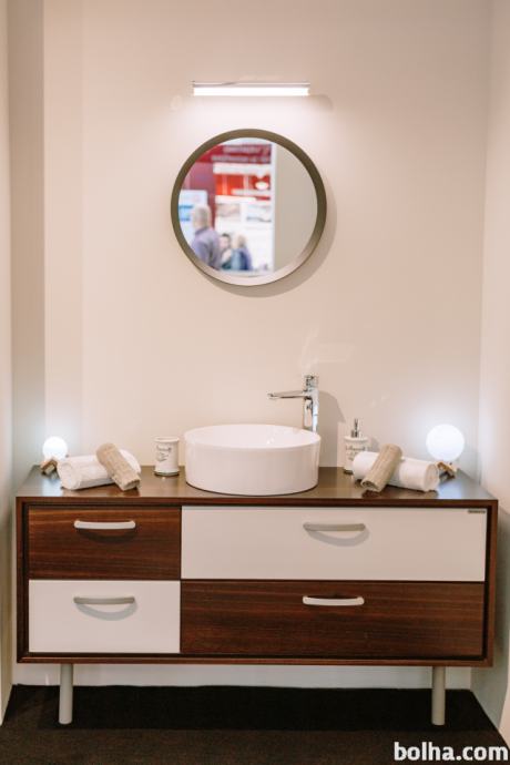 Prodam nov nerabljen (sejemski eksponat) kopalniški element Wobath dimenzije 1400x450mm furnirani dimeljeni hrast ter lakiran MDF z Pu barvo RAL 9016. Umivalnik ter armatura in ogledalo so v ceni.Možna montaža kot samostojeni element ali montiran na steno.