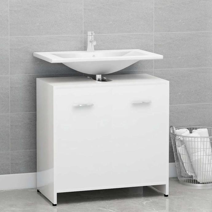 vidaXL Kopalniška omarica visok sijaj bela 60x33x61 cm iverna plošča