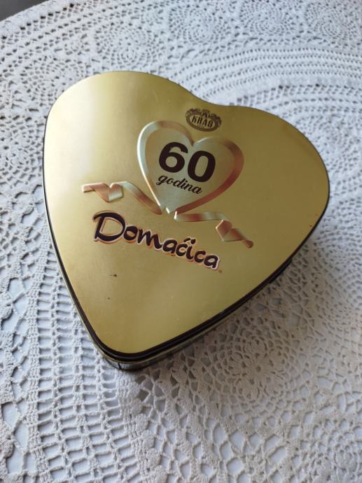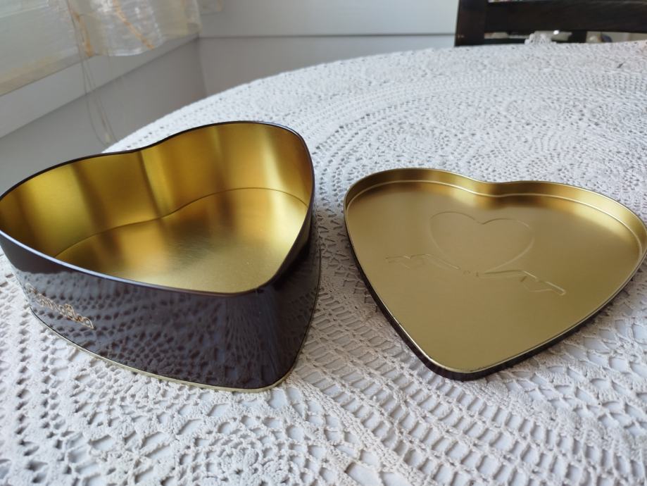 Kovinska škatla s poslikavo, oblika srca, vel. 24x23x7,5 cm,
