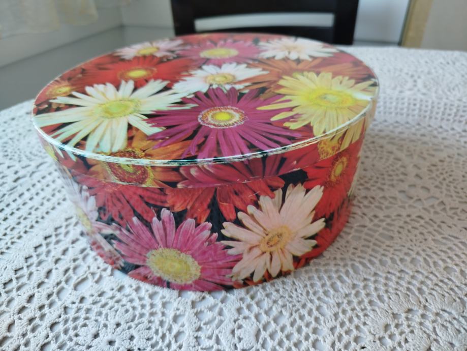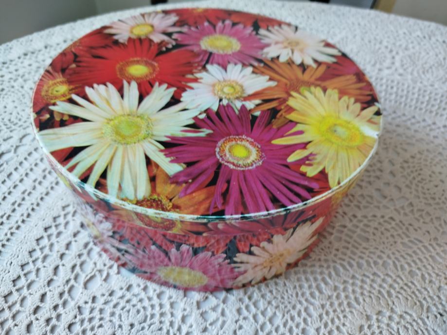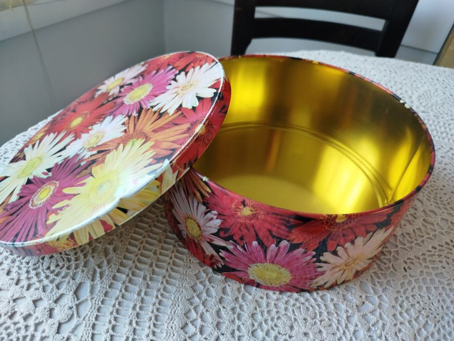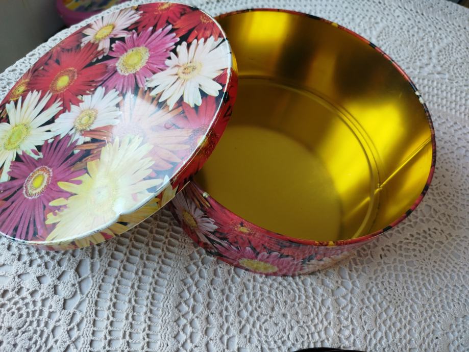 - Velika kovinska škatla s poslikavo cvetlic, premer 26 cm, viš. 10,5 cm,
