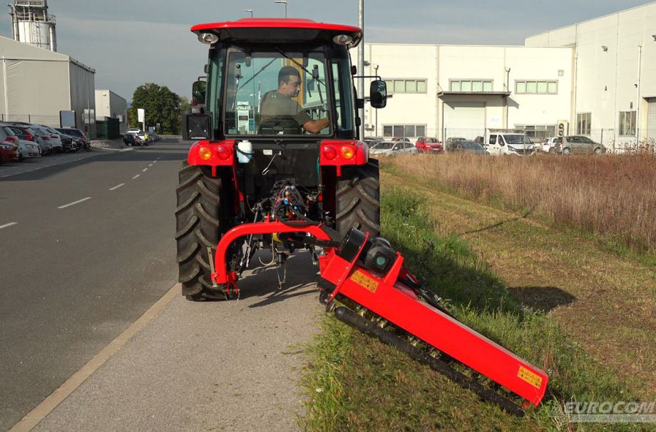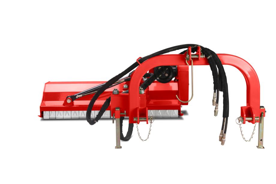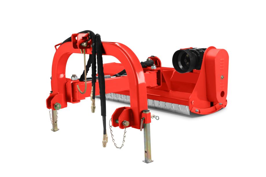 Hidravlični bočni pomik z nagibom +90° / –65° omogoča preprosto doseganje težje dostopnih predelov. Opremljen je z 28 kladivi, ki poskrbijo za učinkovito mulčanje trave, podrasti in grmičevja. Nastavljiv valj in sanke zagotavljajo stabilno delovanje ter enakomerno višino reza. Sklopka v reduktorju varuje mehanizem pred preobremenitvami, priložen kardan pa omogoča zanesljiv prenos moči. Zadnja vrata olajšajo dostop pri čiščenju in vzdrževanju. Primeren je za traktorje z močjo 40–50 KM.
