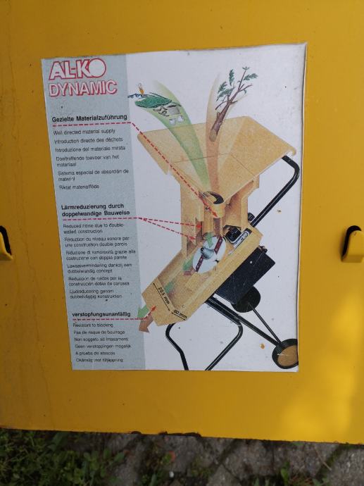 Malo rabljen, kot nov, mulčer za vrtne odpadke, veje od obrezovanja sadnega drevja, žive meje, trsa, robidovja, grmičevja, solate, koruzne stroke, stebla zeljnih glav.....