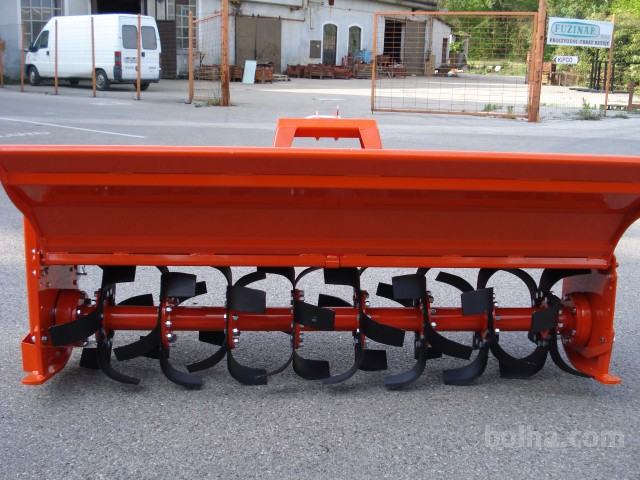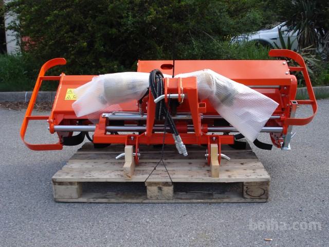 Reduktor ima postavljeno centralno, lahko pa jo pomaknete desno v smeri vožnje za največ 57 cm. Pomikate jo z vijakom, opcija pa je hidravlični cilinder, tako da jo lahko pomikate levo desno s hidravličnim cilindrom, doplačilo za hidravlični cilinder 221,43 €. V ceni je zajet kardan Ax5, če želite kardan s sklopko doplačilo 124,44 €. Ima 6 nožev na prirobnici, tako da ima vsega skupaj 48 nožev. Delovna globina 18 cm. Loputa ni več enojna, ampak škatlasta ( ukrivljena dvojna pločevina v škatlast profil ).