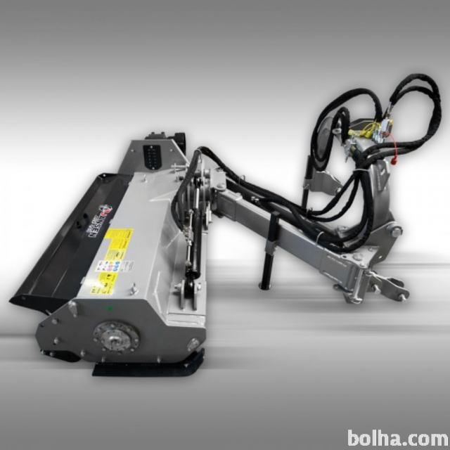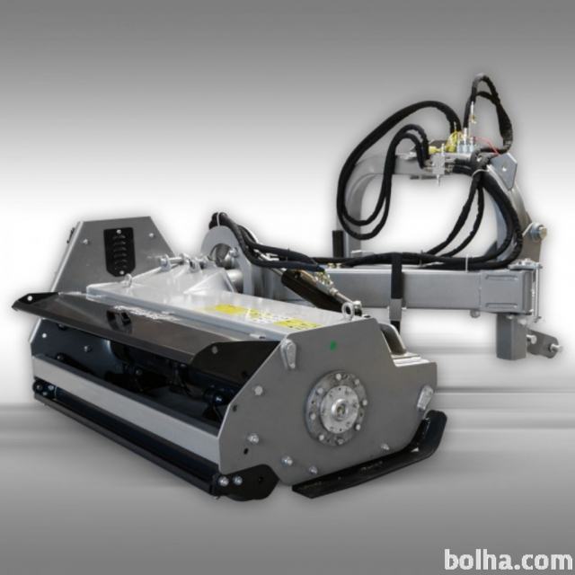 Mulčer bočne konstrukcije. Hidravlični pomik levo/desno in gor/dol. Za to funkcijo mora imeti traktor 2 lastna hidravlična kroga, za poganjanje cilindrov na mulčerju, ki imajo dvojno delujoč valj.