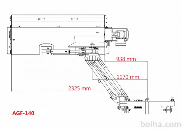 Maksimalna bočna poravnava-umik od centra vpetja do skrajne stranske mere kosišča znaša 233cm.