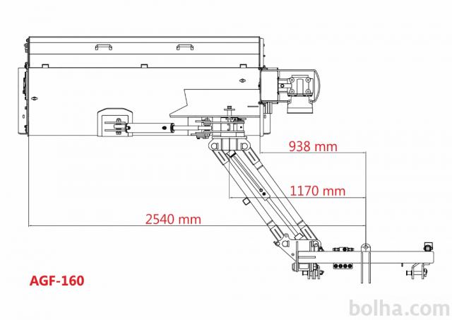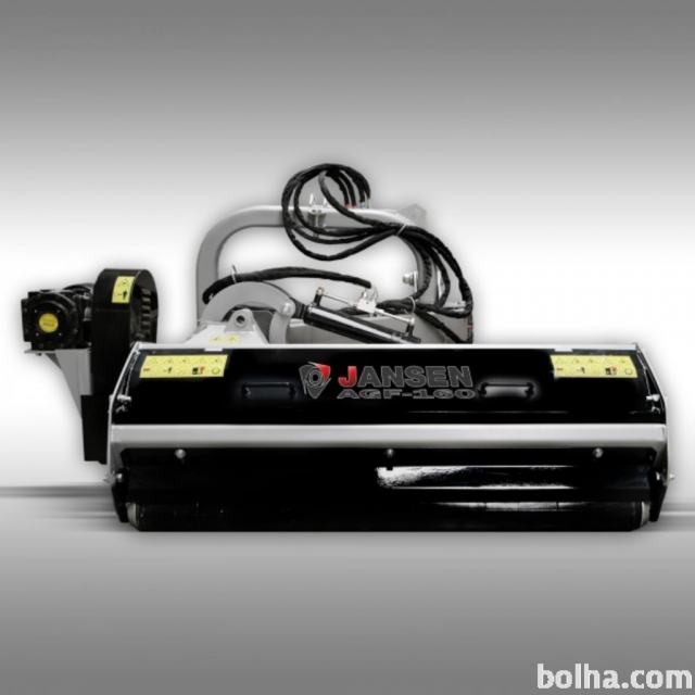 Traktorski mulčer Jansen AGF-160 delavne širine 155cm, gnan s strani traktorskega kardana, bočne konstrukcije. Vpetje je standardno tri točkovno. Mulčer je močne konstrukcije z močnimi rokami, robustnim reduktorjem in težkimi kladivi vpeti spiralno na močni osovini. Mulčer je opremljen z hidravličnim pomikom levo/desno in naklonsko gor/dol.