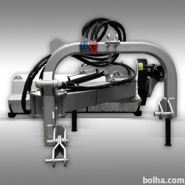 Mulčer bočne konstrukcije. Hidravlični pomik levo/desno in gor/dol. Za to funkcijo mora imeti traktor 2 lastna hidravlična kroga, za poganjanje cilindrov na mulčerju, ki imajo dvojno delujoč valj.