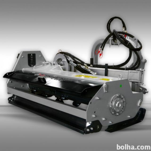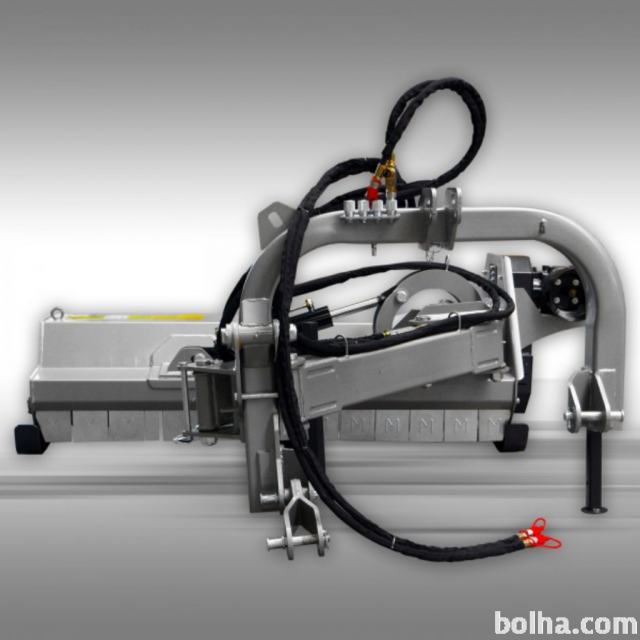 Mulčer bočne konstrukcije. Hidravlični pomik levo/desno in gor/dol. Za to funkcijo mora imeti traktor 2 lastna hidravlična kroga, za poganjanje cilindrov na mulčerju, ki imajo dvojno delujoč valj.