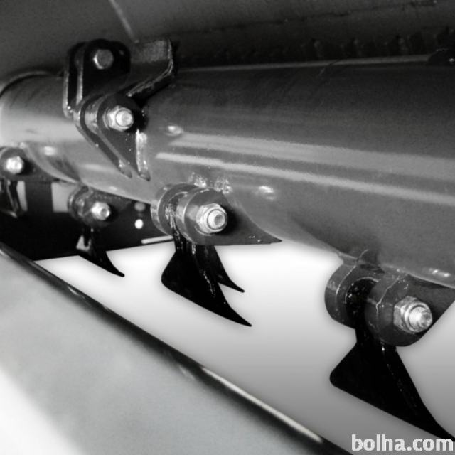 Spredaj so nameščene vzmetene pocinkane letvice, ki preprečujejo vstop kamenja.