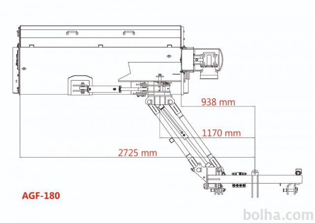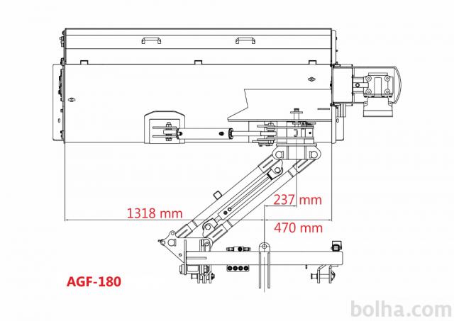 Traktorski mulčer Jansen AGF-180 delavne širine 178cm, gnan s strani traktorskega kardana, bočne konstrukcije. Vpetje je standardno tri točkovno. Mulčer je močne konstrukcije z močnimi rokami, robustnim reduktorjem in težkimi kladivi vpeti spiralno na močni osovini. Mulčer je opremljen z hidravličnim pomikom levo/desno in naklonsko gor/dol.