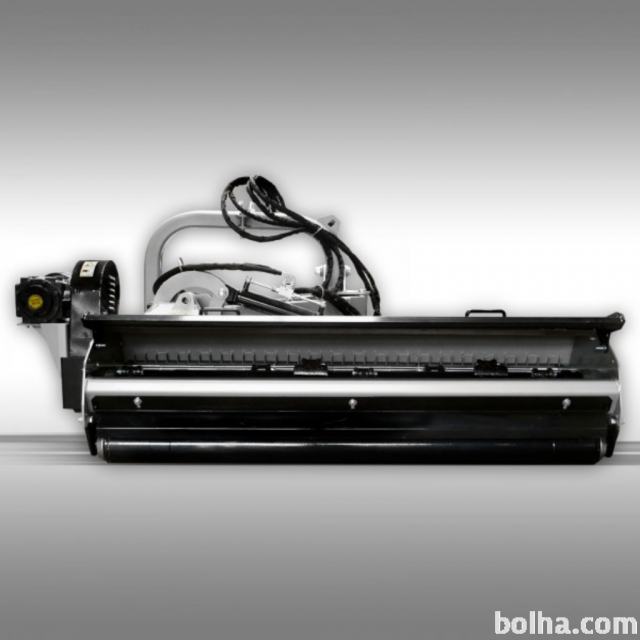 Mulčer bočne konstrukcije. Hidravlični pomik levo/desno in gor/dol. Za to funkcijo mora imeti traktor 2 lastna hidravlična kroga, za poganjanje cilindrov na mulčerju, ki imajo dvojno delujoč valj.