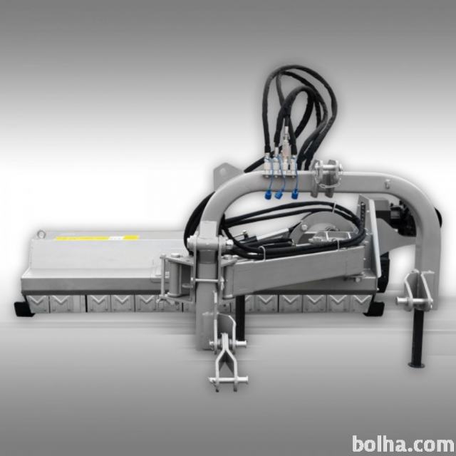 Mulčer bočne konstrukcije. Hidravlični pomik levo/desno in gor/dol. Za to funkcijo mora imeti traktor 2 lastna hidravlična kroga, za poganjanje cilindrov na mulčerju, ki imajo dvojno delujoč valj.