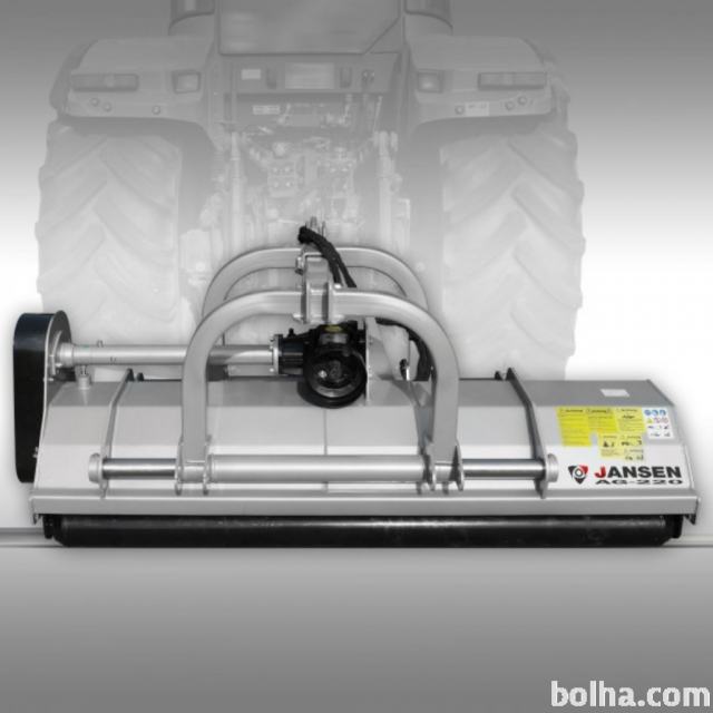 Posebej robustna konstrukcija mulčerja AG-220 s funkcijo hidravličnega bočnega prehoda je primeren za montažo spredaj in zadaj. Ima posebno ojačan kotni menjalnik in je izjemen pri svojem delovanju. Mulčer ima širino košnje 217 cm in se poganja s pomočjo kardana na traktorju, (kardan je priložen).