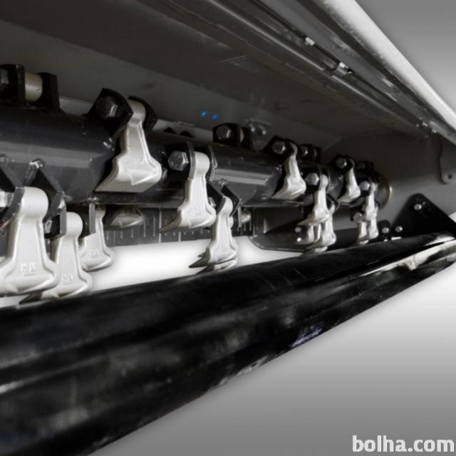 Močan robusten reduktor. 24 kladivnih rezil posebej poboljšanih teže 0,8kg/kos, vpeti spiralno okoli močne osovine.
