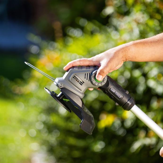 Akumulatorska kosilnica LUX-TOOLS A-RT-20/26-24 vam omogoča nežno in temeljito nego trate. Ker deluje brez kablov, ponuja veliko svobodo gibanja in ga lahko uporabljate kjerkoli.Kosilnica s rezili in zaščitnim lokom za rastlineZa hitro in učinkovito košnjo ima naprava rezalni krog s premerom 26 cm. Da bi pri košnji zaščitili vaše cvetlične grede in rastline, je opremljena z zaščitnim lokom za rastline. Poleg tega ima akumulatorska kosilnica vrtljivo in poševno rezalno glavo, kar omogoča prilagoditev naklona. Tako boste zlahka dosegli tudi težje dostopna mesta.Udobna vrtna kosilnica s teleskopskim ročajem in dodatnim ročajemKosilnica je teleskopsko nastavljiva, kar omogoča prilagajanje višine glede na telesno višino uporabnika. Dodatni ročaj omogoča udobno dvoročno vodenje naprave ter olajša delo.Kosilnica z akumulatorjem in polnilnikomTa akumulatorska kosilnica spada v sistem LUX 1 PowerSystem in deluje s serijskim 20 V (18 V nominalnim) litij-ionskim akumulatorjem z zmogljivostjo 2 Ah ali 4 Ah. Priporočamo uporabo priloženega 2 Ah akumulatorja, ki omogoča približno 30 minut delovanja. S priloženim polnilnikom ga lahko napolnite v 5 urah.En akumulator - dve zmogljivosti: 1 PowerSystemKonec je z različnimi akumulatorji in polnilniki - sistem akumulatorjev 1 PowerSystem znamke LUX-TOOLS to omogoča. Vse pomembne naprave za dom in vrt delujejo v enem sistemu. Namesto različnih naprav z različnimi akumulatorji lahko vse naprave uporabljate z enim samim akumulatorjem. To je praktično in stroškovno ugodno. Zahvaljujoč tehnologiji Twin-Power lahko z dvema 20-voltima akumulatorjema poganjate tudi zmogljive 40-voltne vrtne stroje - vse z enim sistemom akumulatorjev!Sistem 1 PowerSystem združuje najboljše lastnosti najnovejše generacije akumulatorjev. Optimalno upravljanje polnjenja, sistem zračnih tunelov za hlajenje akumulatorja, ohišje, zasnovano za varnost in dolgo življenjsko dobo, ter visokokakovostne akumulatorske celice zagotavljajo največjo zanesljivost in varnost - tudi pri zahtevnih nalogah. Odkrijte svobodo brez kablov za dom in vrt s sistemom 1 PowerSystem znamke LUX-TOOLS.Vsebina paketa- 1 x LUX akumulatorska kosilnica za travo- 1 x polnilnik- 1 x 20 V (18 V nominalni) litij-ionski akumulator