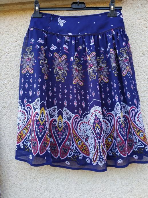 Krilo je podloženi in ni raztegljivo, zapenja se ob strani z zadrgo, v pasu meri 36cm, dolžina je 58cm,