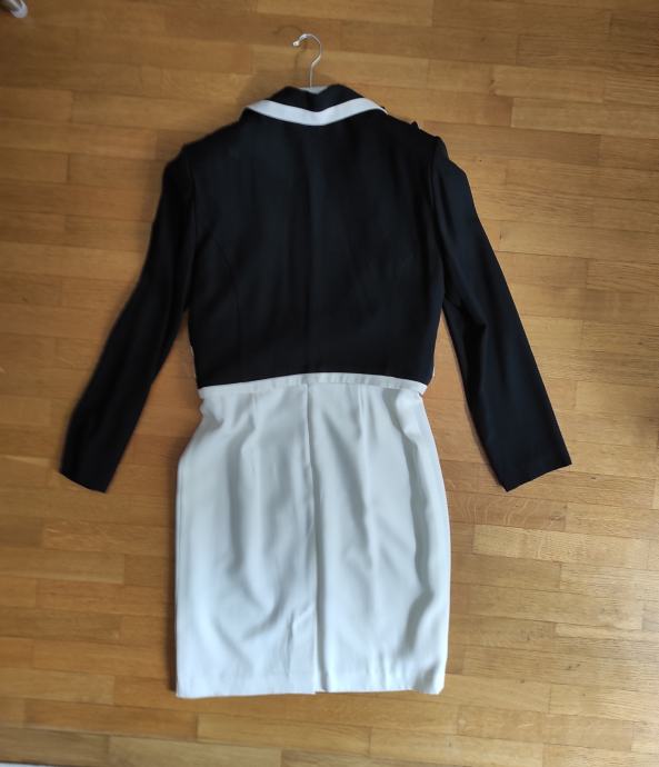 Prodam konplet obleke in kratke jakne, znamke Joseph Ribkoff. Velikost 38-42. Obleka je predelana, tako da je spodak velikost 38, zgoraj 42. Dolžina do kolen. Barvna kobinacja bele in črne, zlati detajli. Podloženo.
